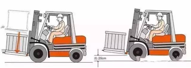 6、降低貨叉,門架向后傾斜