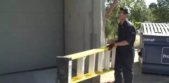 搬運(yùn)梯子時(shí),使梯子頂端向前,這樣便于放置。