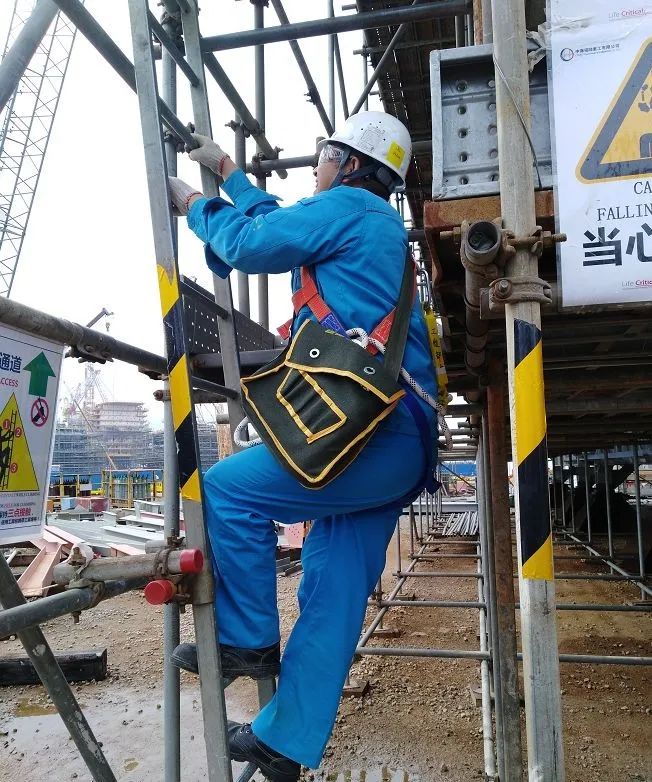 一定要「三點(diǎn)接觸」使用爬梯。 若不可避免須攜帶物件上高,請(qǐng)使用工具背包,或是使用滑輪組將物件吊至高處。 在攀爬梯子時(shí),手里拿著工具材料或文件資料等,這個(gè)行為是極其危險(xiǎn)的,很容易會(huì)單手把持或把持不穩(wěn),造成人員從梯子墜落或物件從高空墜落。