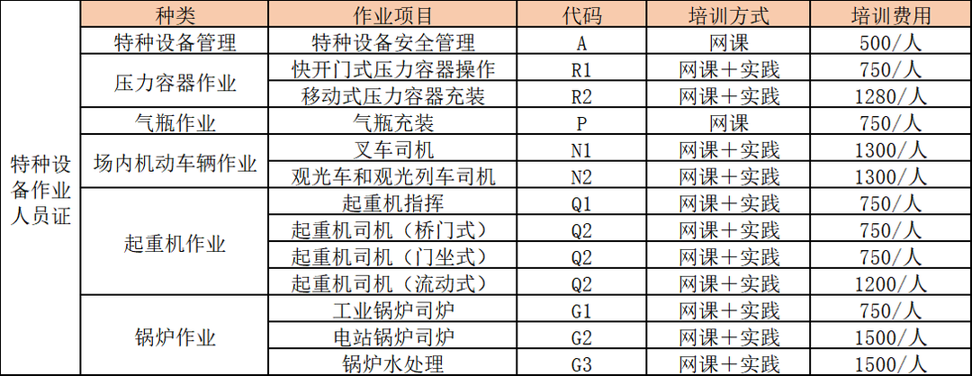二、報名注意事項 1.報名材料:身份證復(fù)印件一份,二寸白底照片2張,身體健康證明(體檢報告)一份(報考叉車、觀光車、鍋爐水處理需要提供),申請表一份(單位蓋章)。 2.報名條件:18—60周歲身體健康。 3.證書期限:每四年內(nèi)復(fù)審一次。