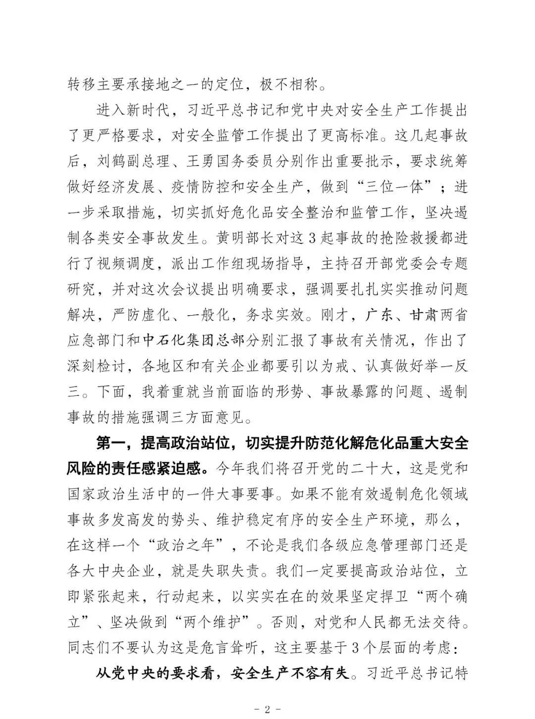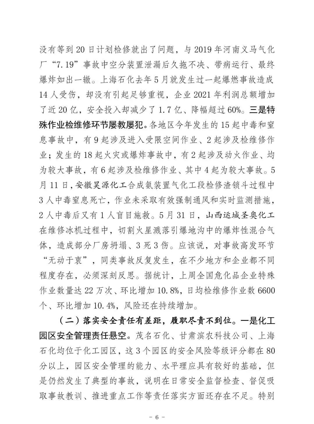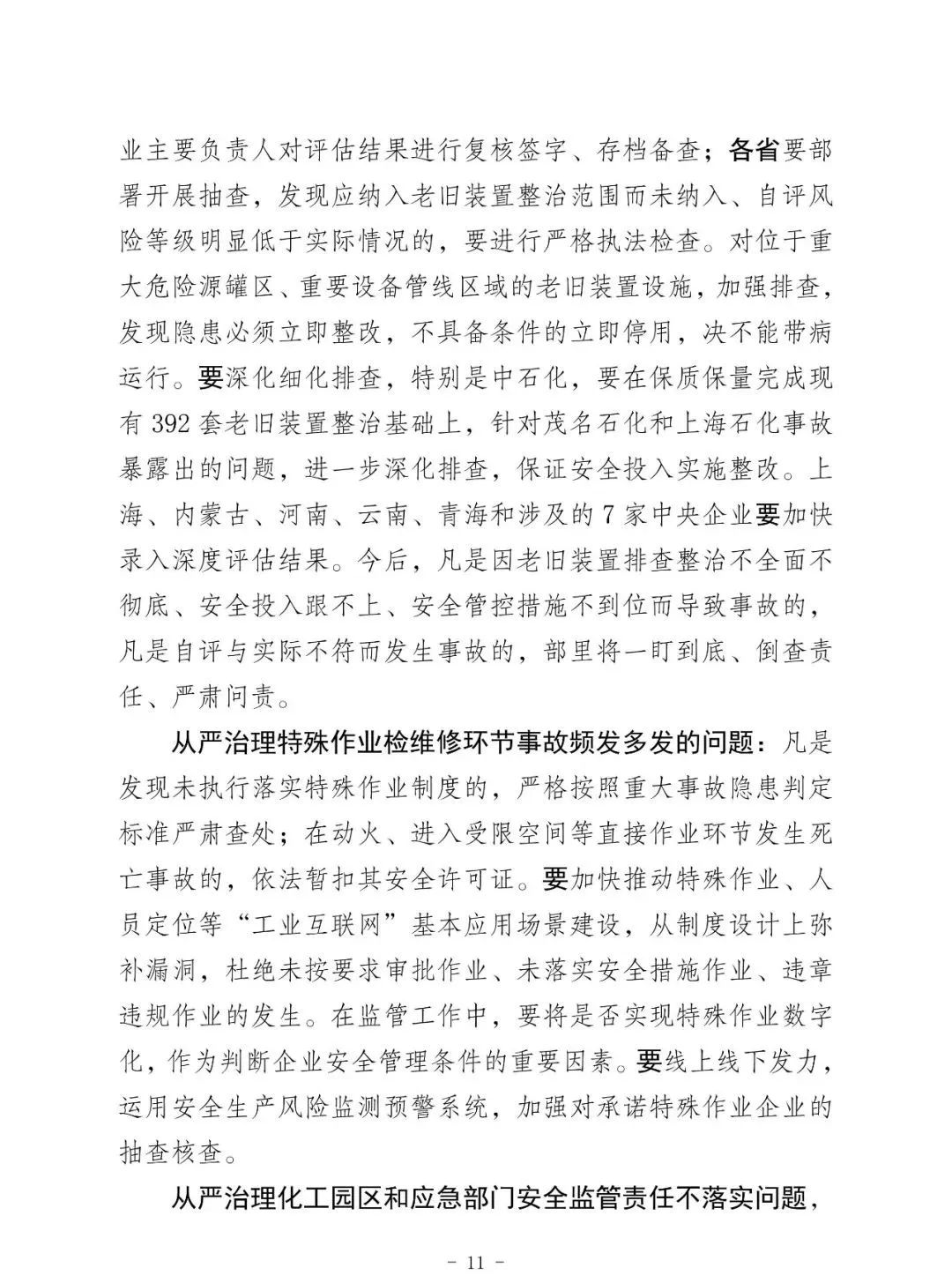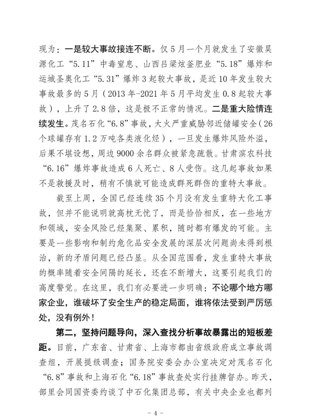 昨天上午全國;娨曤娫挄h孫廣宇副部長講話精神: ——八個從嚴治理 一是從嚴治理產(chǎn)業(yè)轉移安全風險把關不嚴的問題。 二是從嚴治理老舊裝置風險隱患根除不了的問題。 三是從嚴治理特殊作業(yè)和檢維修環(huán)節(jié)事故多發(fā)頻發(fā)的問題。 四是從嚴治理化工園區(qū)和應急管理部門安全監(jiān)管責任不落實問題。 五是從嚴治理央企總部安全履職不力的問題。 六是從嚴治理集中治理不深不實的問題。 七是從嚴治理重大危險源安全風險防控硬傷的問題。 八是從嚴治理打擊非法違法行為不徹底的問題。